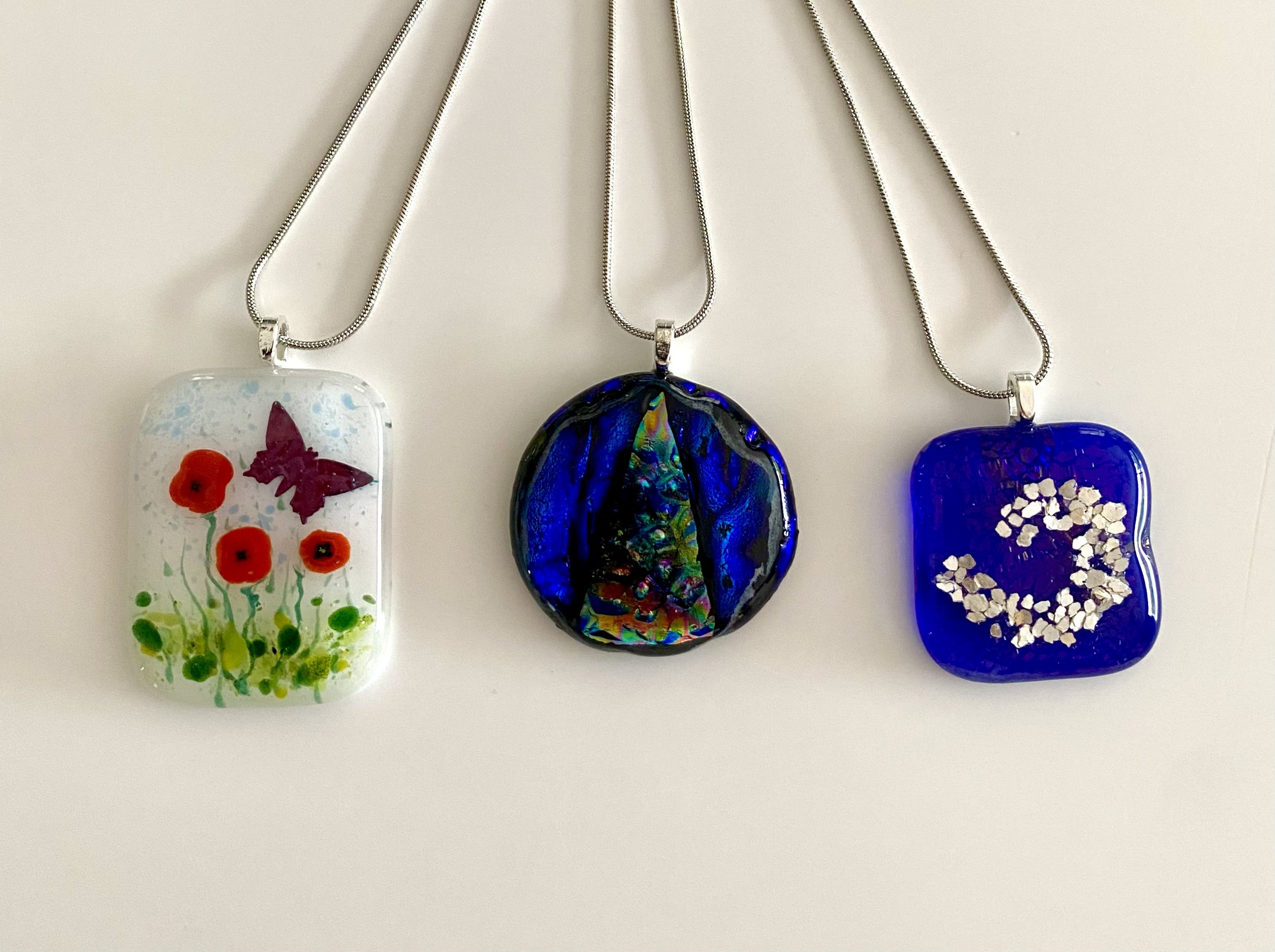 Create 3 fabulous, fused glass pendants. Choose from a range of beautiful coloured glass, including some sparkly dichrioc glass, glass enamels and metal inclusions to create a pendant unique to you. You will learn how to cut glass to shape and about the effect of temperature on glass.